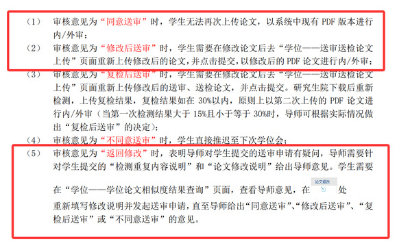 导师给完“修改后送审”,学生重新上传了pdf了,如果还想再修改更新pdf,让导师给“返回修改”,学生重新送审申请,导师重新给“修改后送审”意见,重新上传论文,如此可以反复。