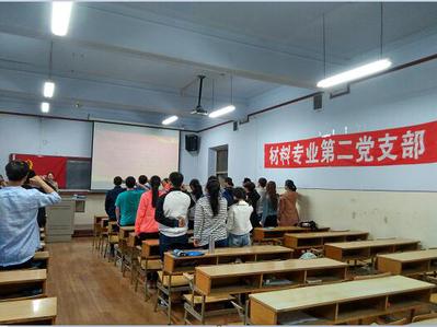 2017年6月2日下午18时30分,材化学院材料专业第二党支部在11号楼0126教室召开了“学榜样,做先锋”主题党日活动。活动由支部书记杨立娟主持,材料专业第二党支部全体党员及预备党员参与此次活动。