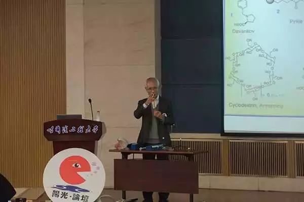 冈本佳男教授围绕“手性在化学与生活中的作用”这一主题,向同学们介绍什么是分子的手性,并用分子实物模型进行展示。通过具体实例向同学们讲解手性化合物和非手性化合物的区别,并凭借其专业素养分析对映体的相关知识。他分析当前手性药物的市场,说明手性高分子与手性识别的发展现状,激发同学们对化学科学学习的兴趣。在最后的提问环节,冈本佳男对同学们提出的问题一一解答。
