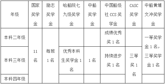 7、中船黄埔文冲奖学金:本科二、三年级自由申报,未得其他奖学金成绩最高者获得。