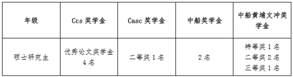 1、参照研究生国奖评选标准,进入研究生国奖答辩的同学中未获国奖的同学按照票数(成绩)顺序获得中船奖学金、CCS优秀论文奖学金(必须有论文,无论文顺延)、CASC奖学金(限定2018级硕士研究生)或中船黄埔文冲奖学金特等奖、二等奖学金。