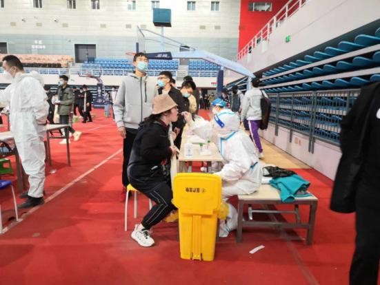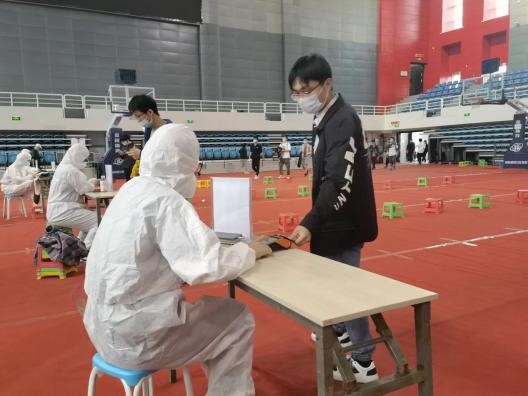 材化学院学生会的志愿者积极参与疫情防控工作,保障本次核酸检测安全、有序、高效地进行。
