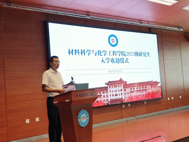 米兰milan官方网站2023级研究生入学欢迎仪式于8月31日下午14:00在启航活动中心学术报告厅举行。材化学院院长杨飘萍,党委书记王秦辉,党委副书记刘立静,副院长李峻青,副院长贺飞,特邀嘉宾、学院2000级校友、双登集团股份有限公司副总裁钟义华及学院综合办、教务办、学工办主要负责人,2023级研究生参加仪式,2023级硕士研究生辅导员阿里木江主持仪式。