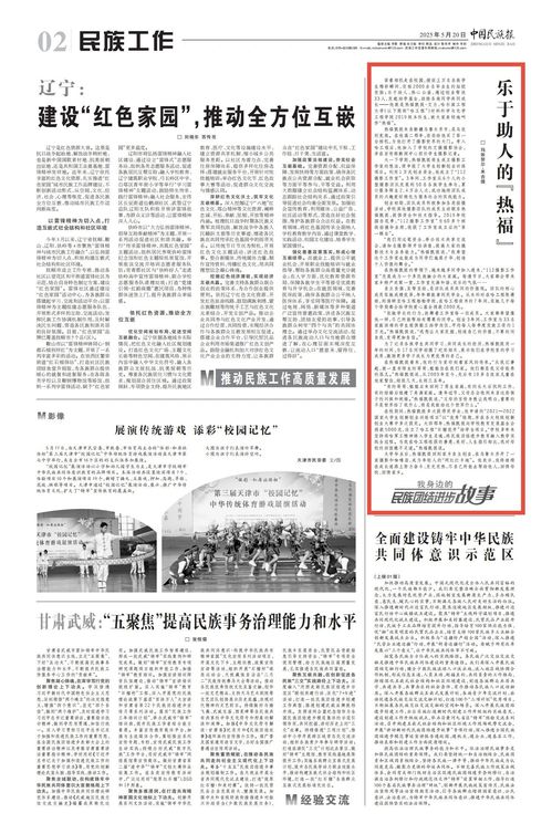 5月20日,中国民族报刊发我院毕业生热福凯提・艾力的事迹,讲述其在校园中践行民族团结进步的暖心故事。2024年10月,国家民委“道中华”文宣平台、中国民族报社联合腾讯新闻,组织举办“我身边的民族团结进步故事”有奖征稿活动。为挖掘和宣传校园内促进民族团结进步的先进典型,让优秀榜样脱颖而出,将正能量传递到更广阔的平台,学校前期开展校内先进人物选拔活动。