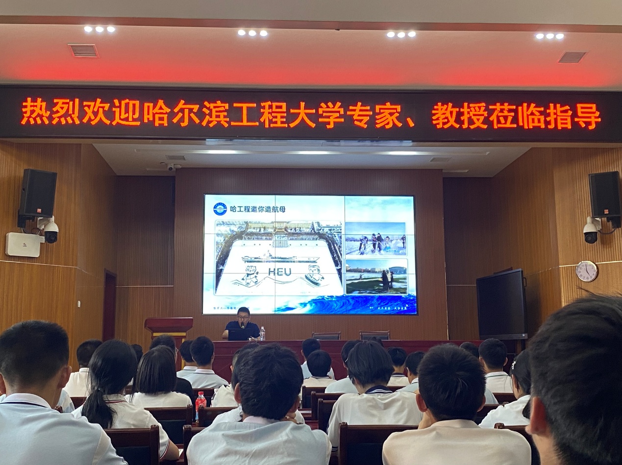 在三峡高中走访期间,刘东平为高二年级百余名师生作《哈工程邀你造航母》专题讲座。刘东平首先介绍了学校的历史沿革、学科优势、师资力量、人才培养等方面的情况。随后,他结合学校的办学特色,以鲜活案例展现国之重器背后的哈工程力量,激发了学生们对学校的认知,增强了学生们为国防事业奋斗的决心与信心。最后,他寄语学生们高考不是终点,而是新的起点,希望同学们树立科技报国志,努力刻苦学习,考上心仪的大学。