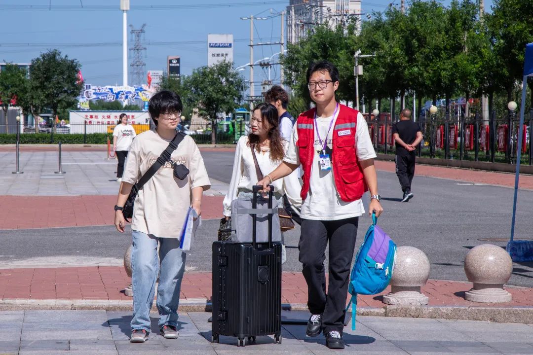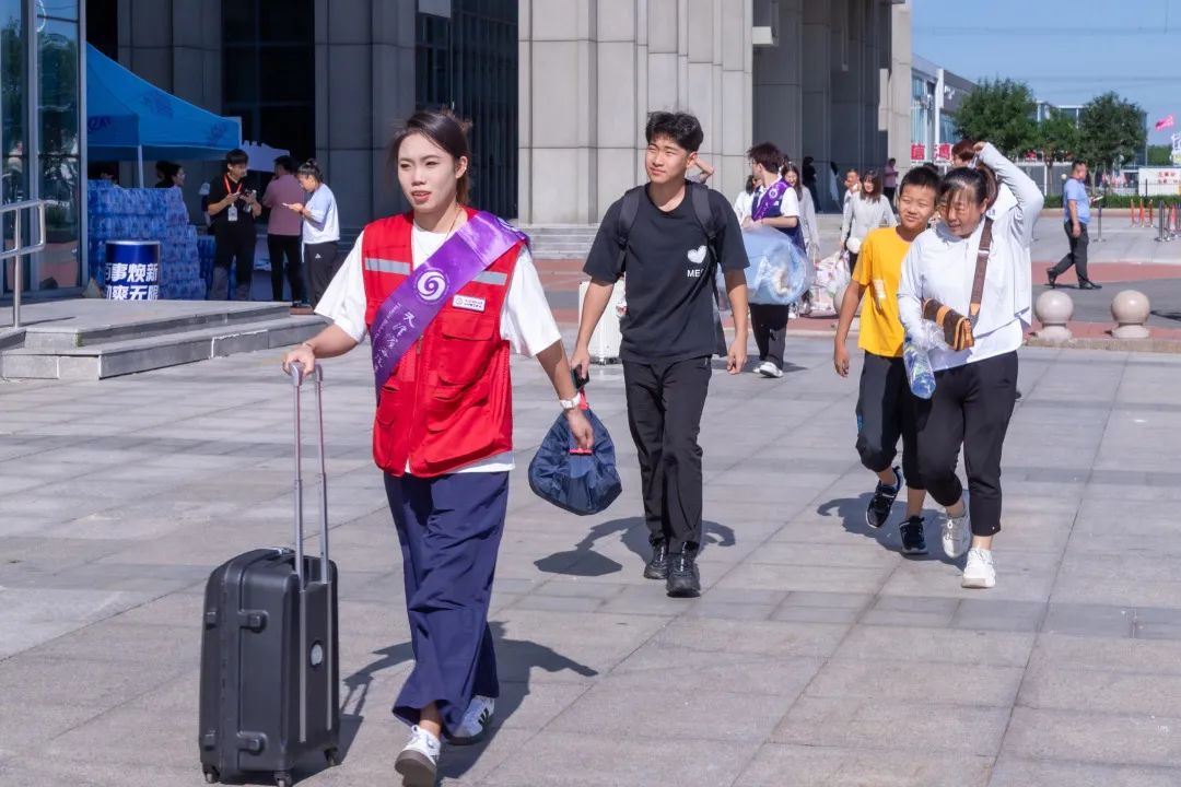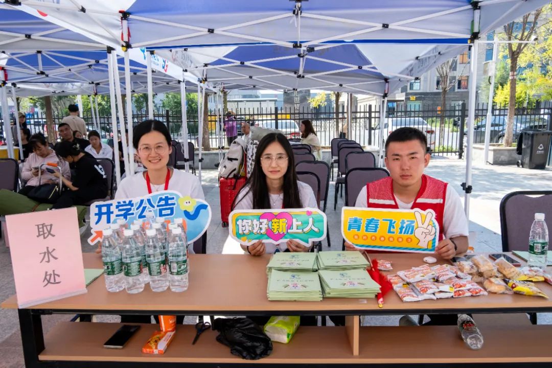 学校志愿者们严阵以待,迎接每一位新同学的到来。在学校门口,志愿者们主动上前帮忙搬运行李、提供物资,引导新生前往报到地点。