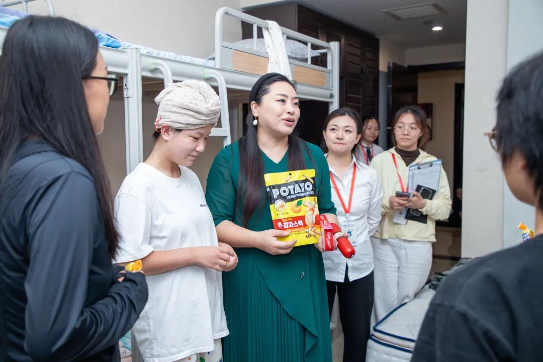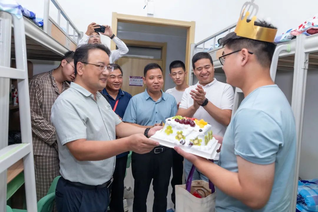 学校领导、老师们走访各个学院宿舍,向2024级新生表达了热烈欢迎,并为新生带来蛋糕、水果、零食等祝福礼品。