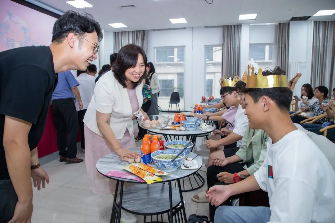 学校领导、老师和同学们齐聚一堂,共同为在本月过生日的新生们送上最真挚的祝福。理事长贾秀芳为他们准备了精美的蛋糕、贴心的礼物、寓意着健康长寿的鸡蛋和手工面条,无不流露着对新生们的深深祝福。